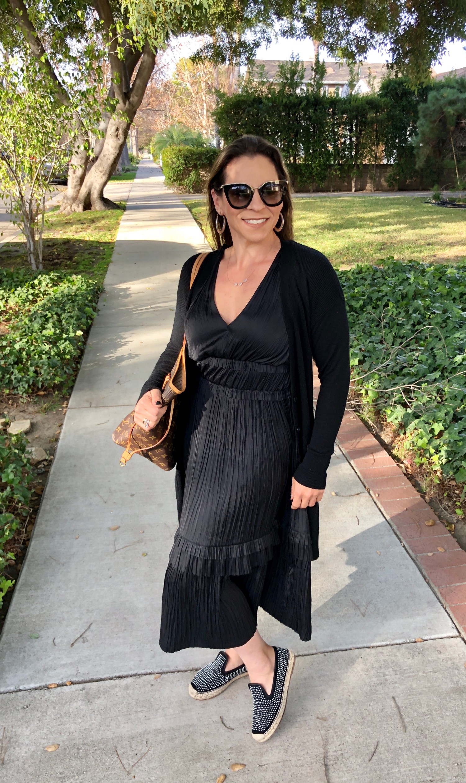 Outfit Details: Dress – Ulla Johnson; Shoes – Elyse Walker (sold out similar here); Bag – Louis Vitton; Sunglasses: Prada (sold out)